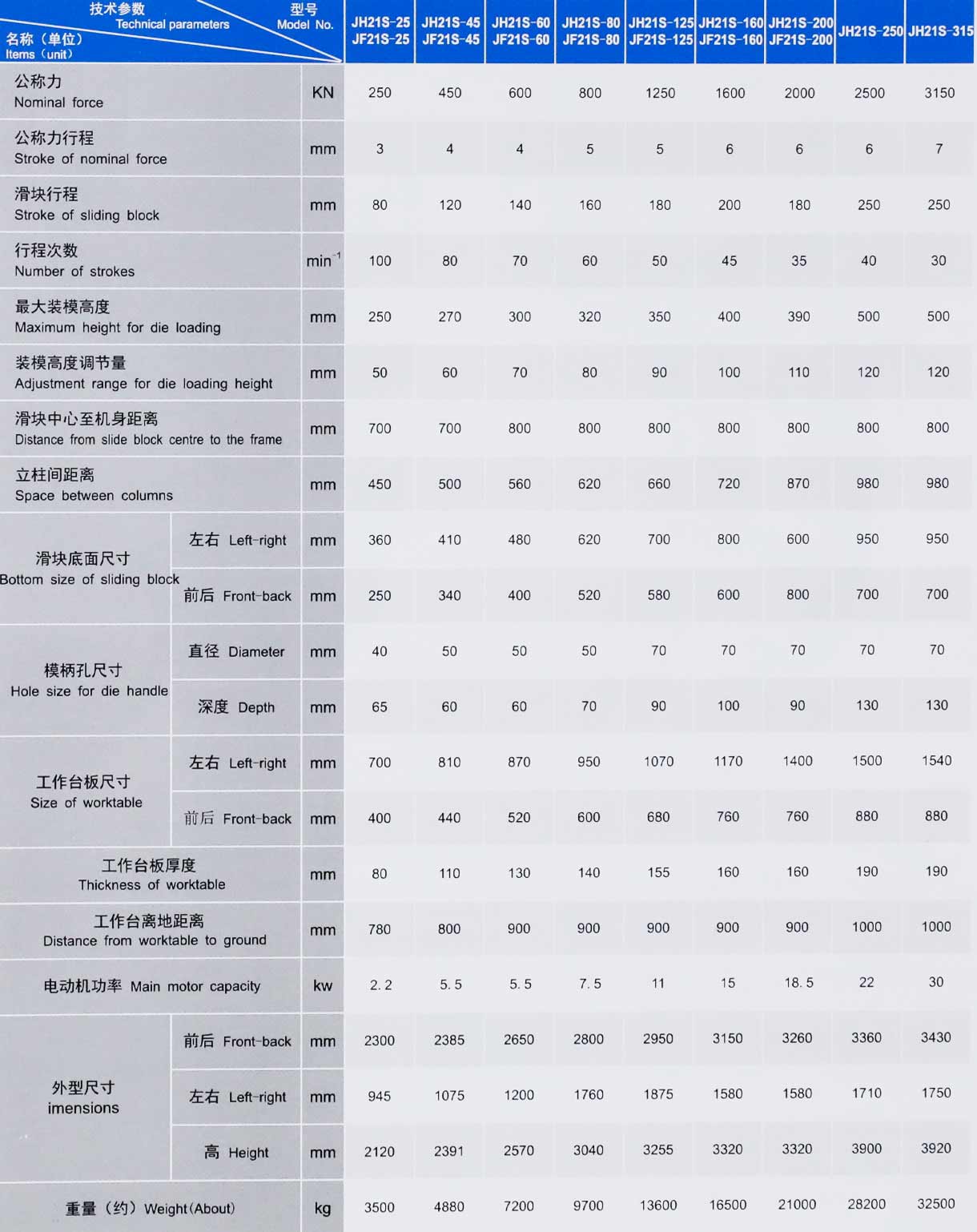 此系列机床由JH21系列演变而来,具有JH21系列产品的结构及性能特点。